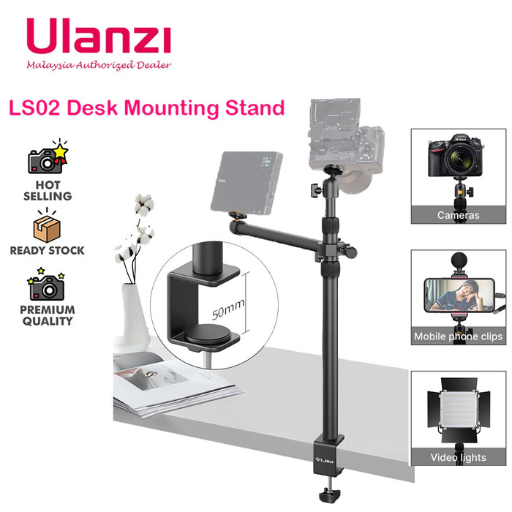 The Ulanzi VIJIM DSLR desk mounts with 18.3 to 48.8 in. super long adjustable range, and 3-section telescopic pole adjustability for cameras/lights/webcam etc.